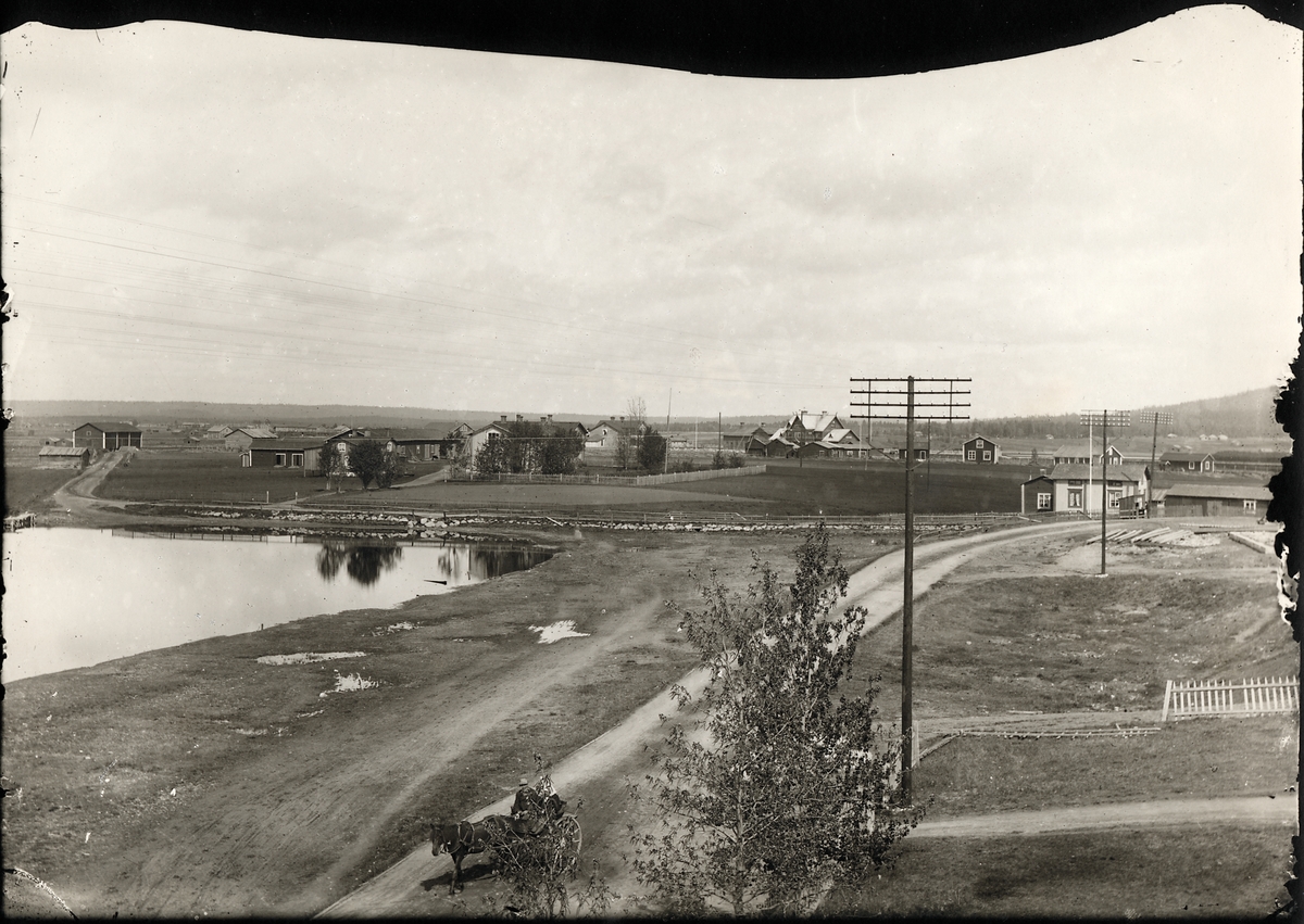 Bodens stationshus till vänster om telefonstolpen i förgrunden, till vänster om detta, gamla stationshuset, uppfört av engelsmännen