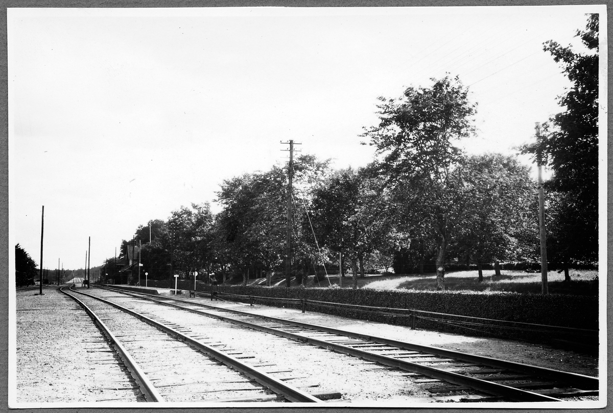 Bergsbrunna stations bangård och plantering. Stationen öppnad 1866.