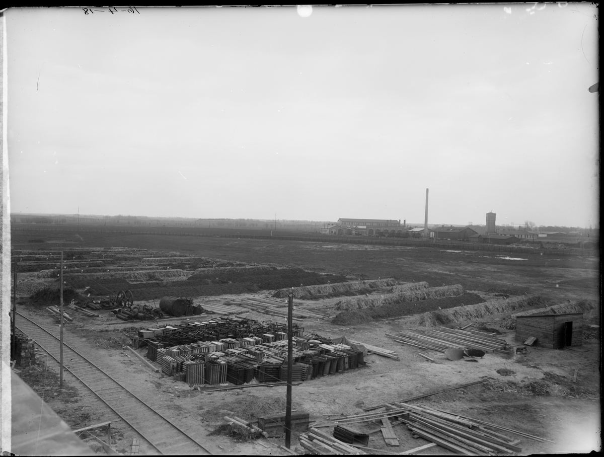 Odlingsbäddar, eventuellt för sockerbetor vid spårområde. I bakgrunden syns järnvägsverkstäderna i Johanneslust, Malmö.