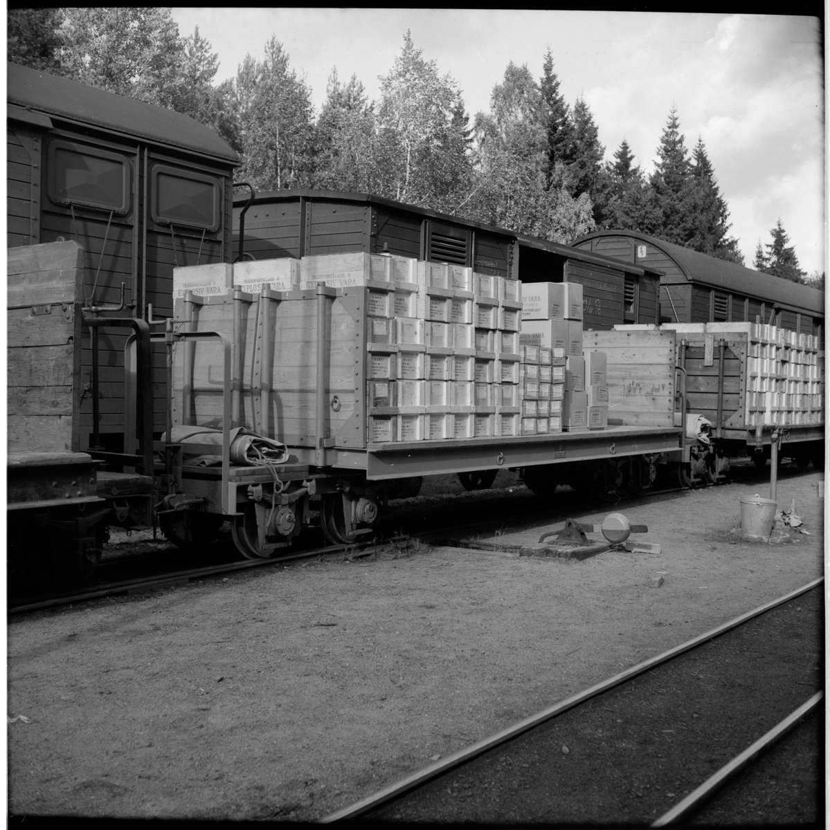 Godsvagnar lastade med lådor innehållande explosiv vara.