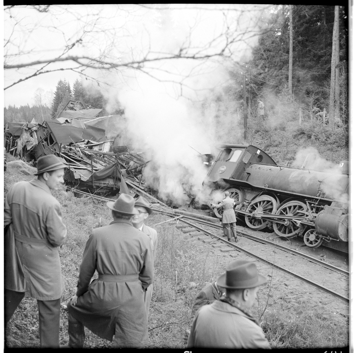 Statens Järnvägar, SJ B5 888 godsvagnar i hög efter urspårning vid Galtåsen.