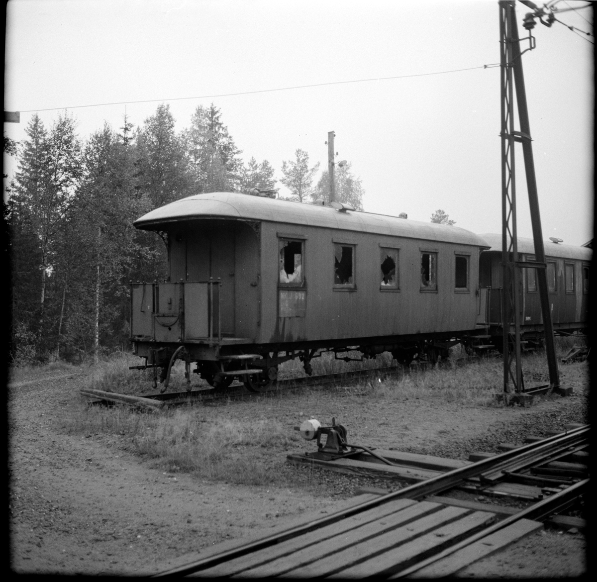 Vandaliserad Nordmark - Klarälvens Järnväg, NKlJ G 692 på ändspåret.
