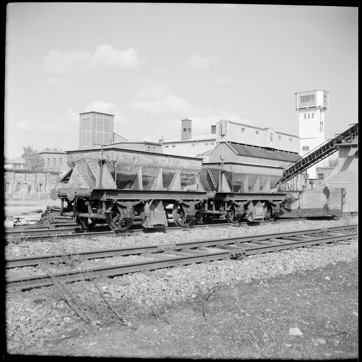 Öppen godsvagn med tömning på sidan vid Zinkgruvan.