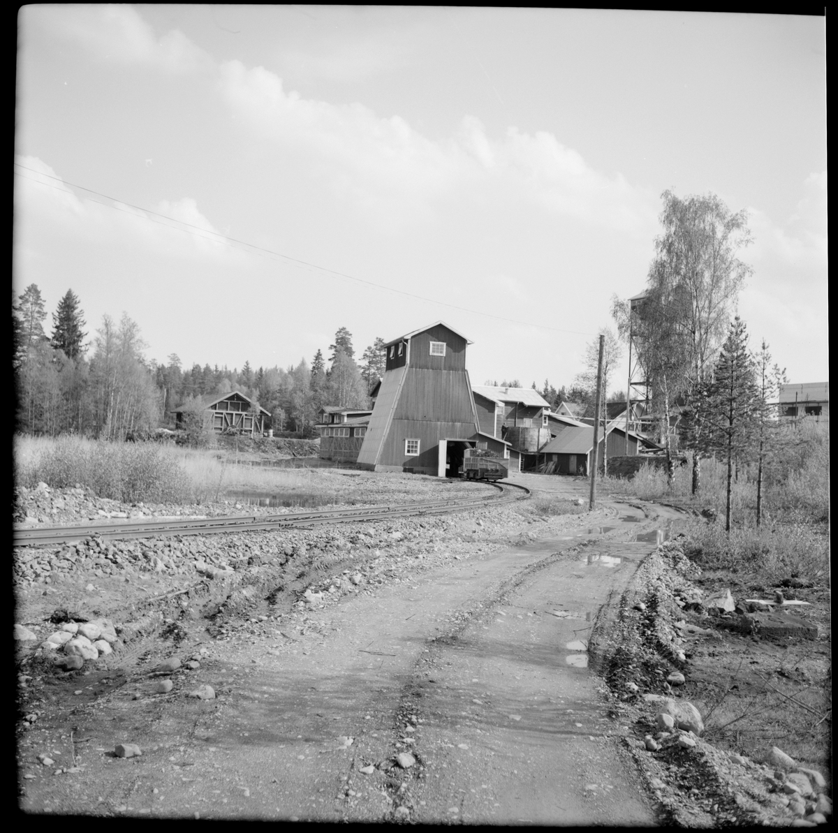 Åmmebergs Järnväg, ÅJ motorvagn "Bulleroxen" vid Zinkgruvan. Tvåaxlig med tippvagn.