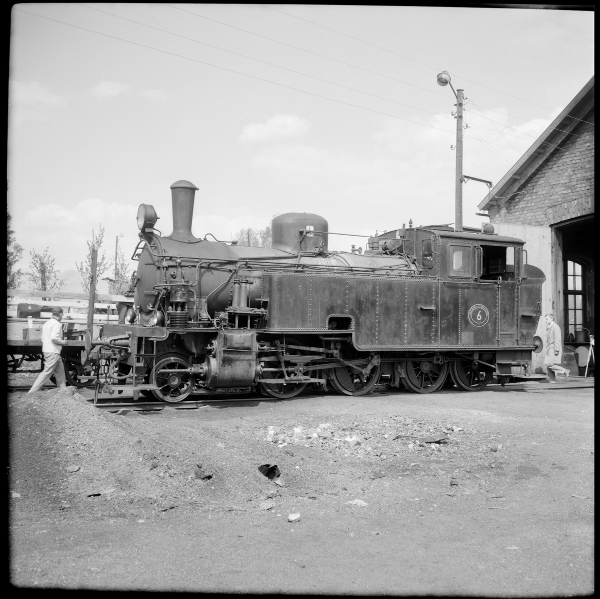 Marma - Långrörs Aktiebolag Vallvik lok 6 utanför lokstallet vid sulfitfabriken i Vallvik.
