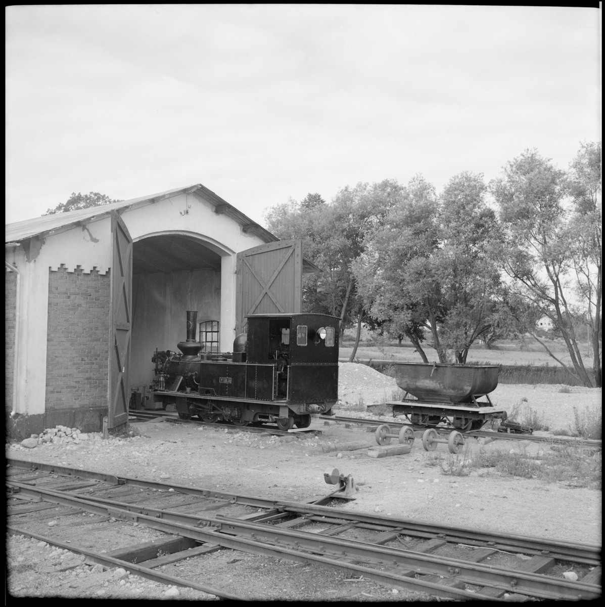 Utanför lokstallet i Mariefred står Stafsjö Järnväg lok 2 "Virå" som användes av Museijärnväg Östra Södermanlands Järnväg, ÖSlJ.