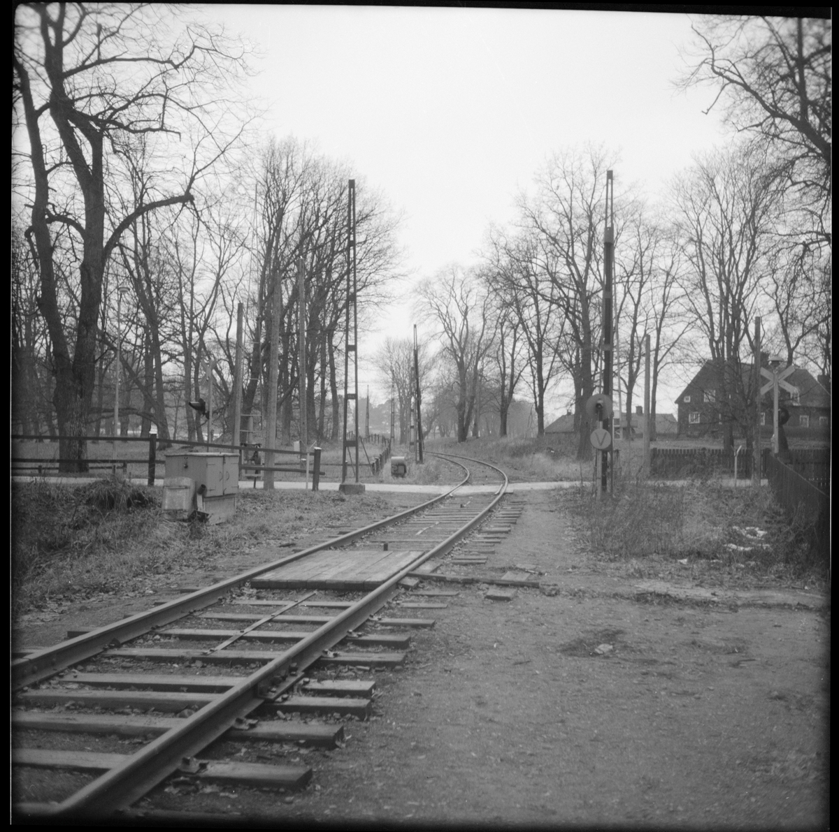 Järnvägsövergång bredvid lokstallet i Mariefred som användes av Museijärnväg Östra Södermanlands Järnväg, ÖSlJ.