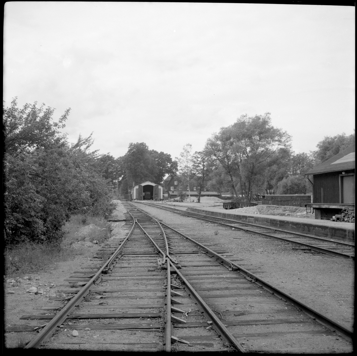 Bangården och lokstallet i Mariefred som användes av Museijärnväg Östra Södermanlands Järnväg, ÖSlJ.