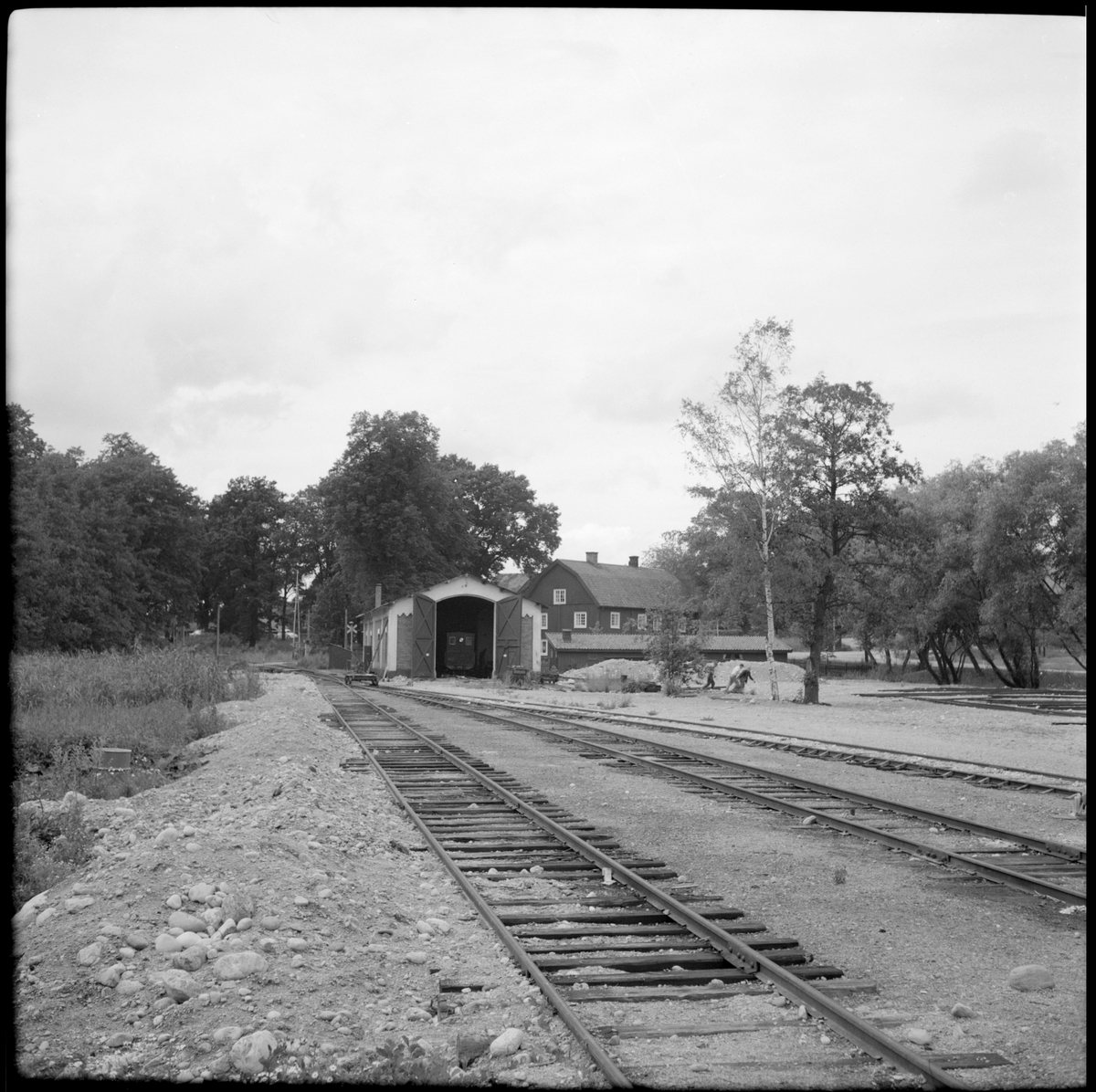 Bangården och lokstallet i Mariefred som användes av Museijärnväg Östra Södermanlands Järnväg, ÖSlJ.