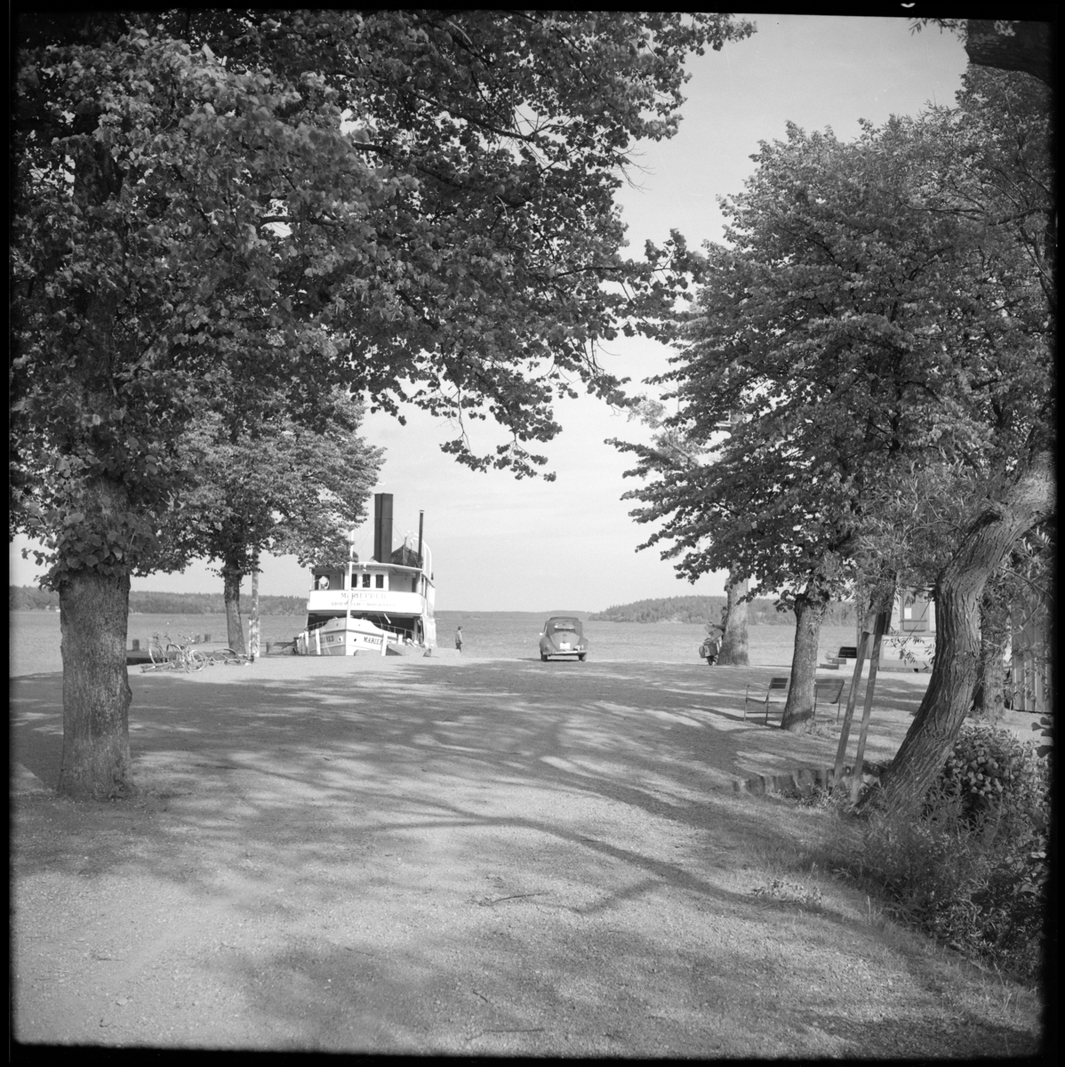 Till vänster i bild vid Mälarens strand ses Ångfartyg S/S Mariefred som trafikerade mellan Mariefred-Läggesta.