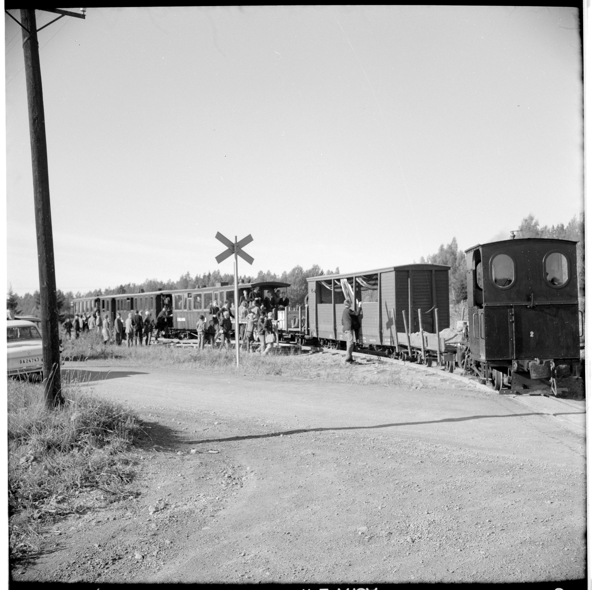 Resande till Museijärnväg Östra Södermanlands Järnväg, ÖSlJ persontåg med lok 2 "Lotta" vid hållplats.