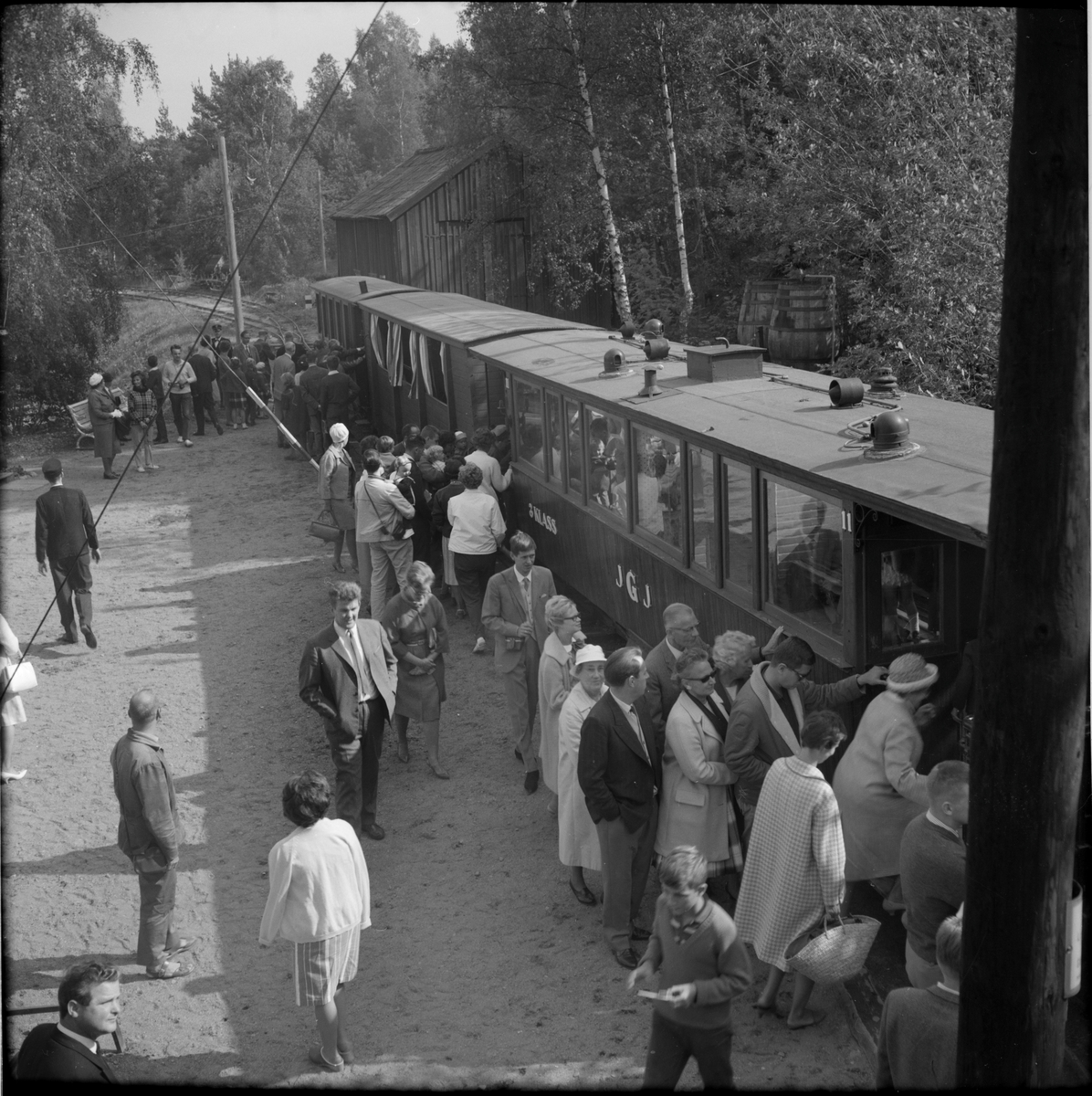 Resande till Museijärnvägen Östra Södermanlands Järnväg, ÖSlJ går ombord på Jönköping - Gripenbergs Järnväg, JGJ 3:e klass personvagn vid Lina bruk.