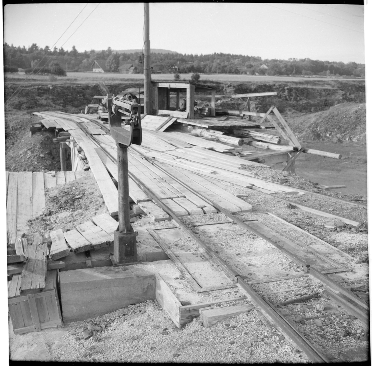 Vid brofästet på järnvägsbron ses en våg från Lindells.