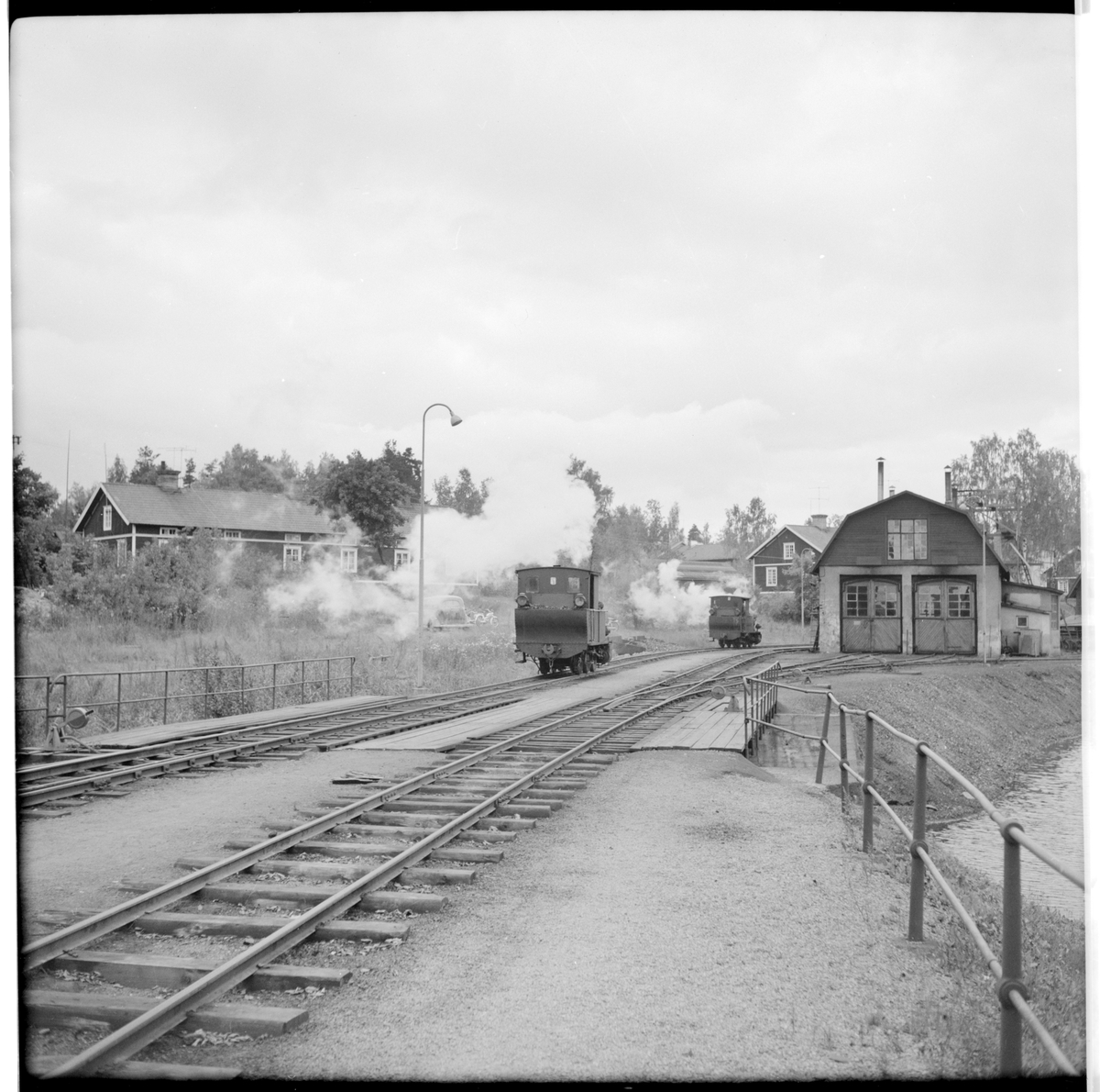 Byvalla - Långshyttans Järnväg, BLJ ånglok utanför lokstallet.