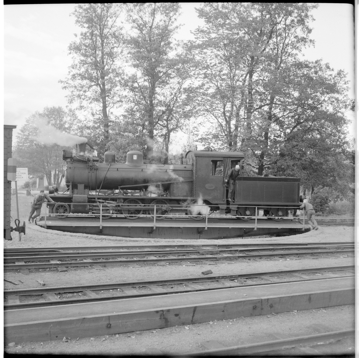 Vändskiva med Byvalla - Långshyttans Järnväg, BLJ lok 5 "Thor" som vrids manuellt.