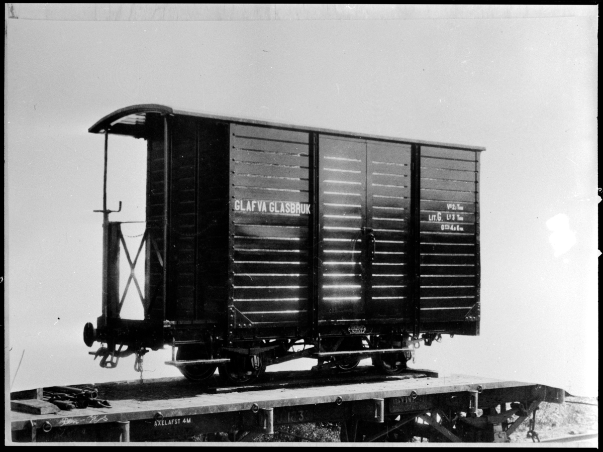 Gävle - Dala Järnväg, GDJ NN3 1733 är lastad med Glafva Glasbruk, godsvagn G.