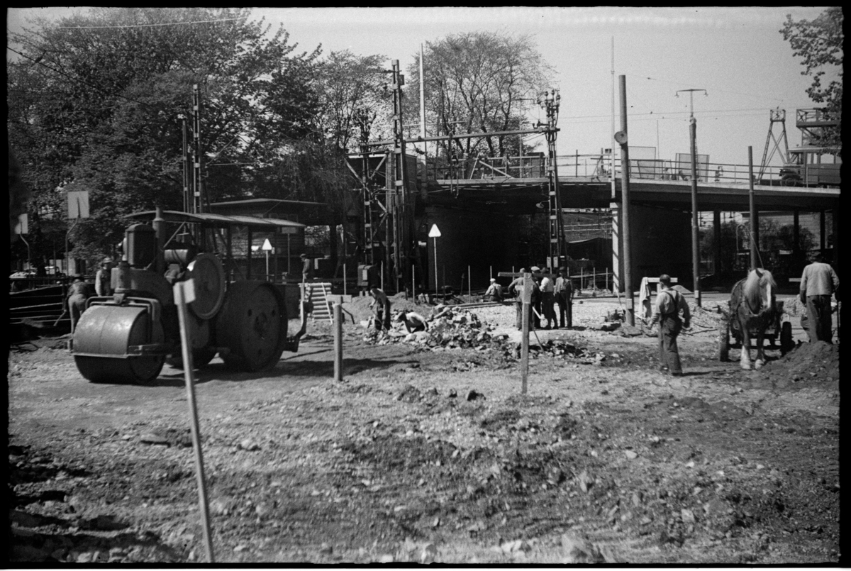 Arbete med att färdigställa en viadukt mellan Stadshusbron och Tegelbacken i Stockholm.