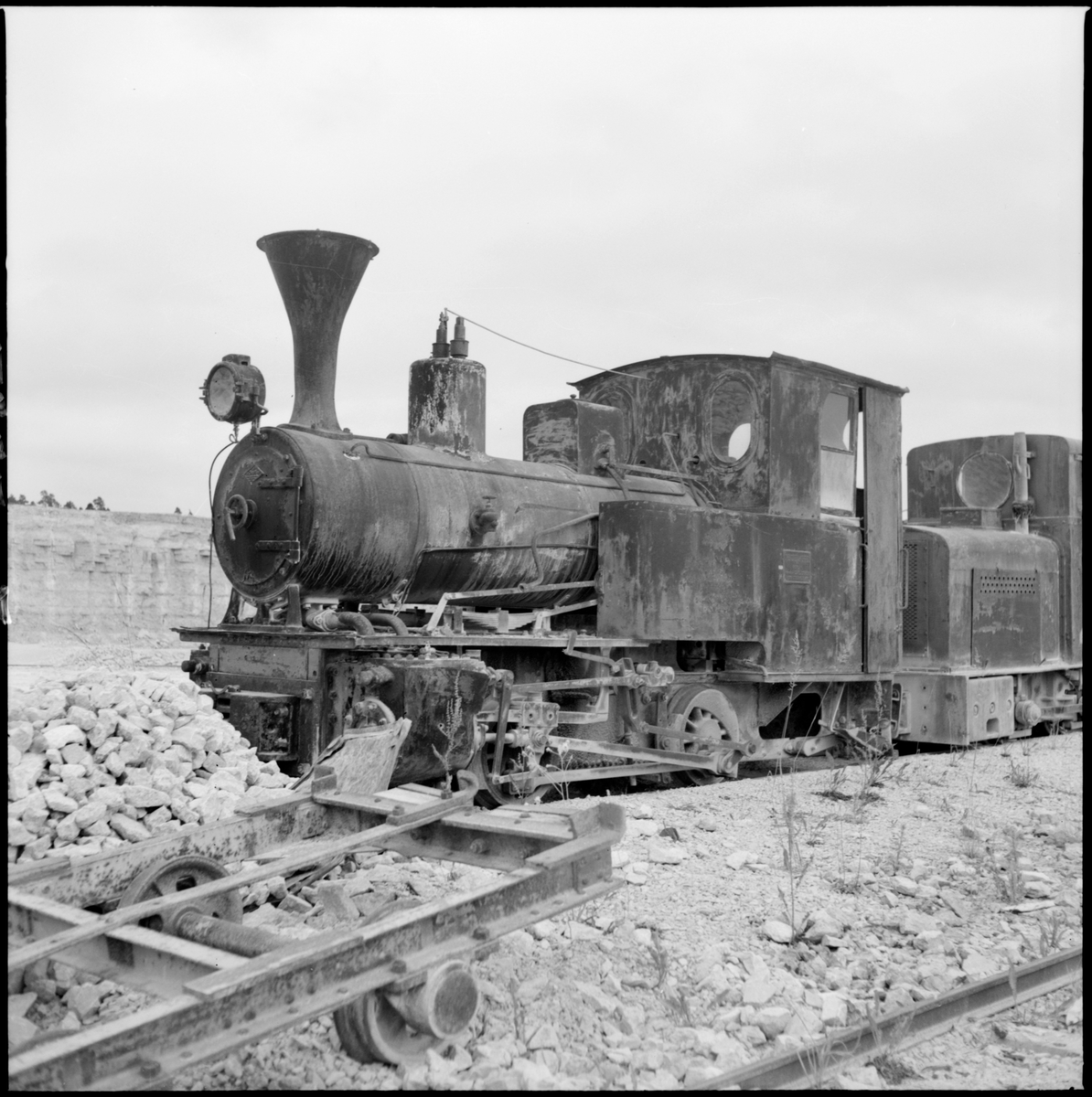Ett av ångloken som användes vid Smöjens kalkbrott men står här vid Storugns kalkbrott.