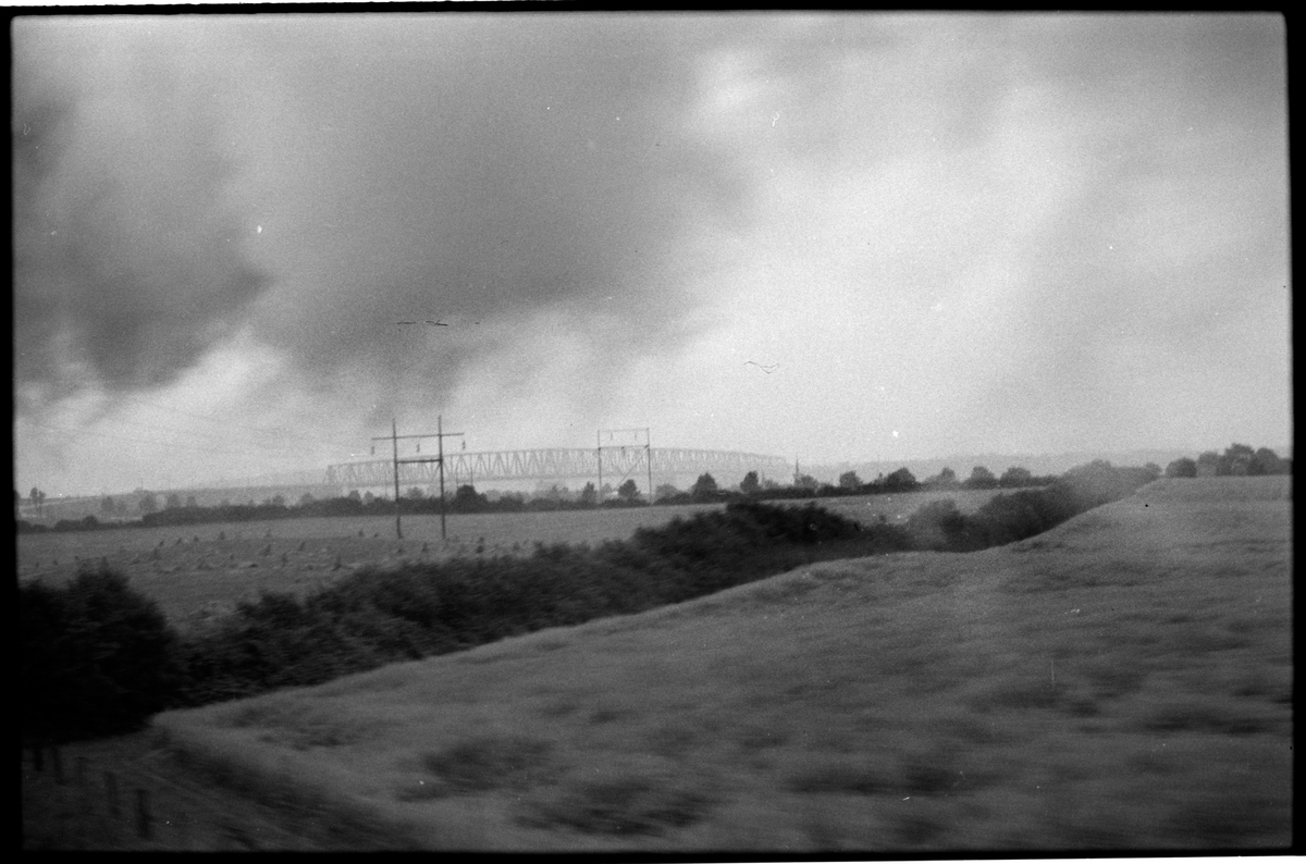I horisonten syns Lilla Bältbron (Den Gamle Lillebaeltsbron) mellan Jylland och Fyn över Lilla Bält, Danmark.