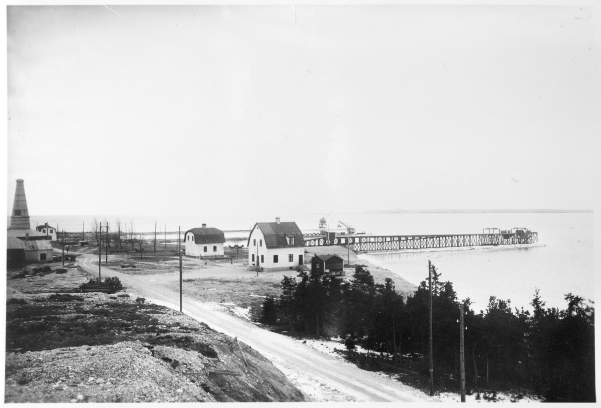 Hamn på Gotland, okänt vilken. Lastning för transport av produkter från kalkbruken.