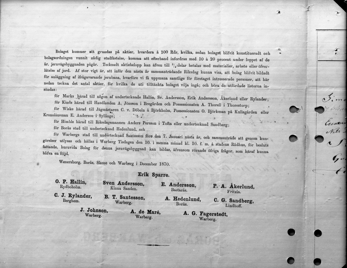 Inbjudning till aktieteckning II, Varberg - Borås Järnväg