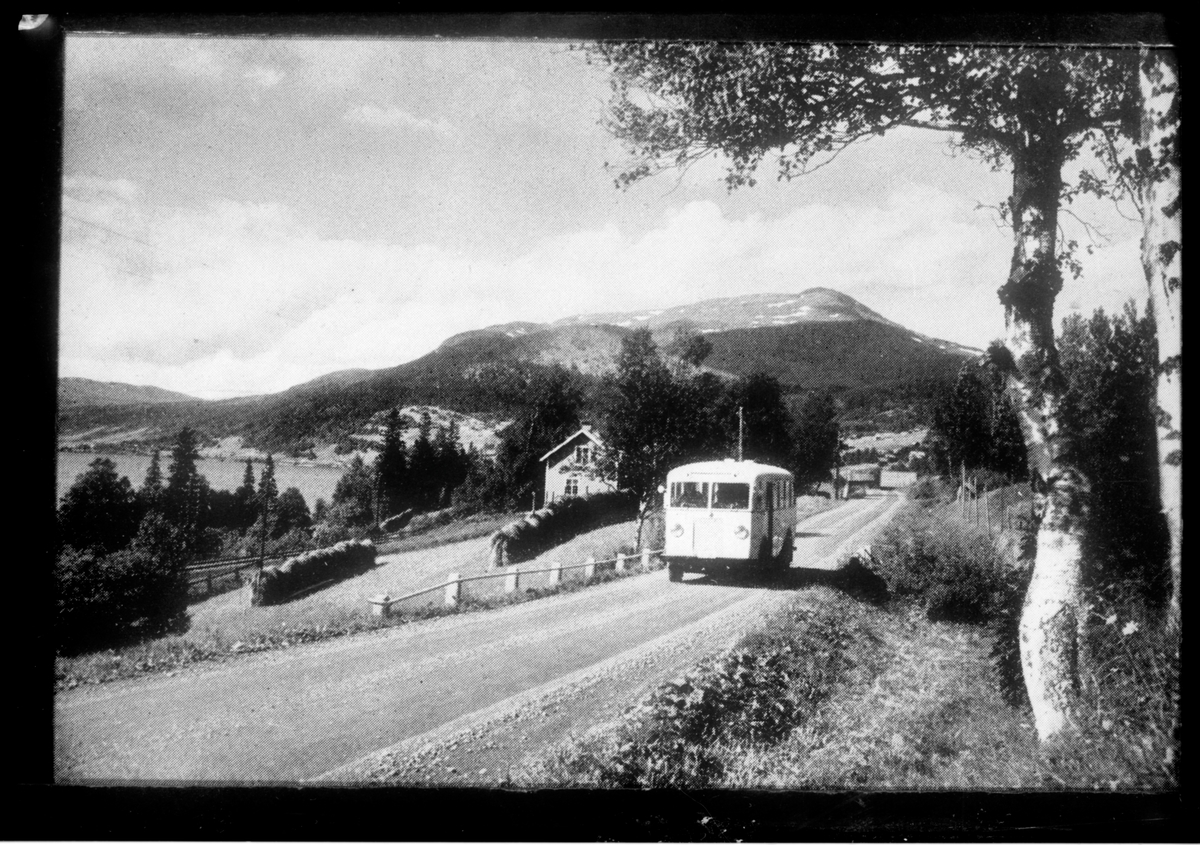 Buss på landsväg med Åreskutan i bakgrunden.
