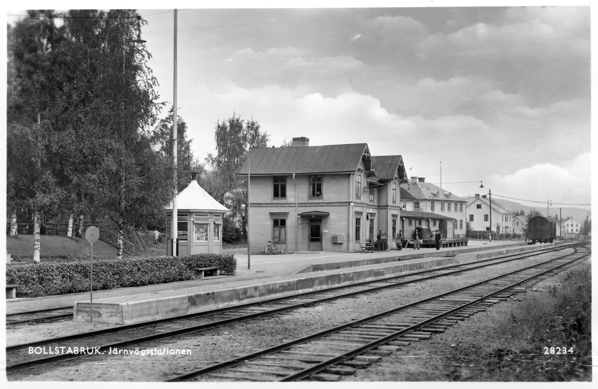 Kopia av Pressbyråns vykort 28234, Bollstabruk, Järnvägsstationen.