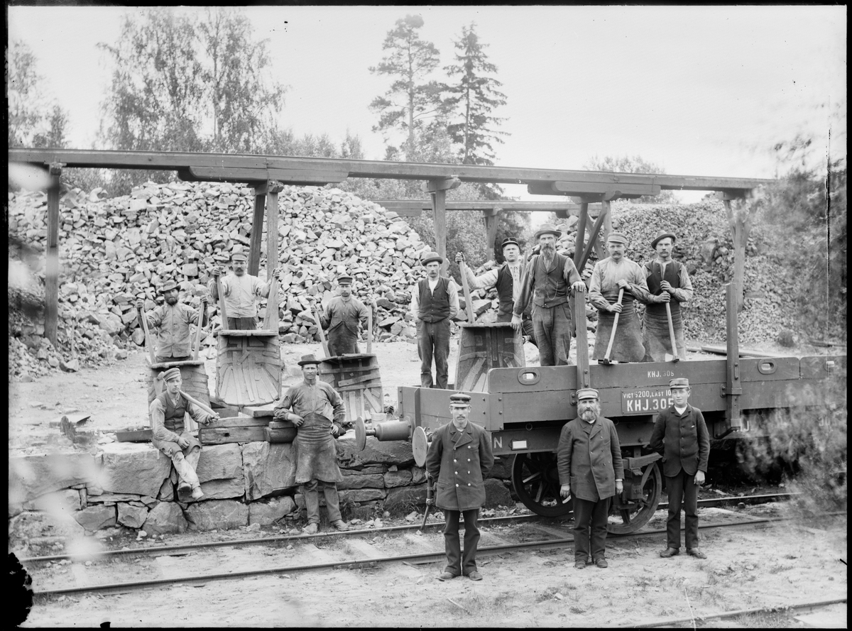 Porträttbild vid Striberg. Godsvagn tillhörande Köping–Hults Järnväg, KHJ N 305.