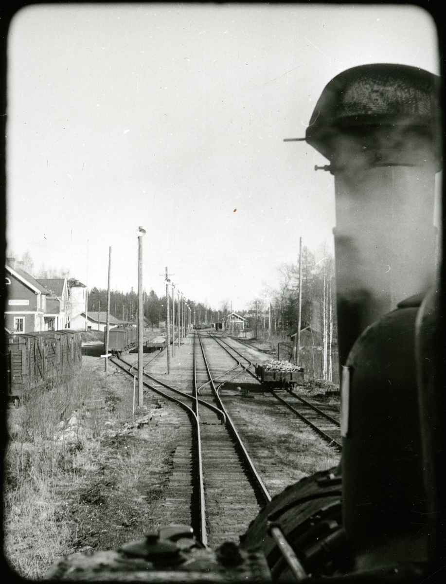 Växlingtåg från källfallet på ingående till Riddarhyttans station. Köping Uttersberg Järnväg, KUJ Lok 7 "Patric Reuterswärd"