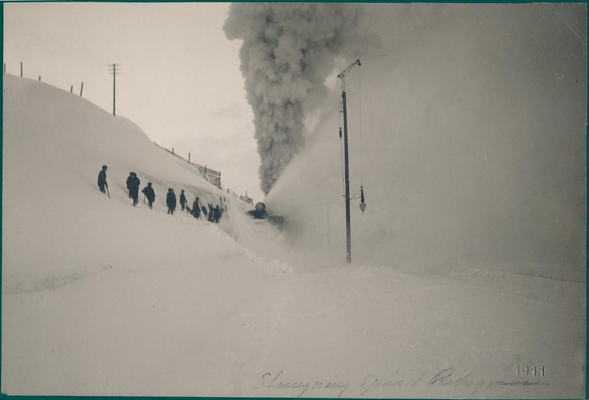 Snöslungan arbetar undan snömassorna på spår 1 vid Riksgränsens station.