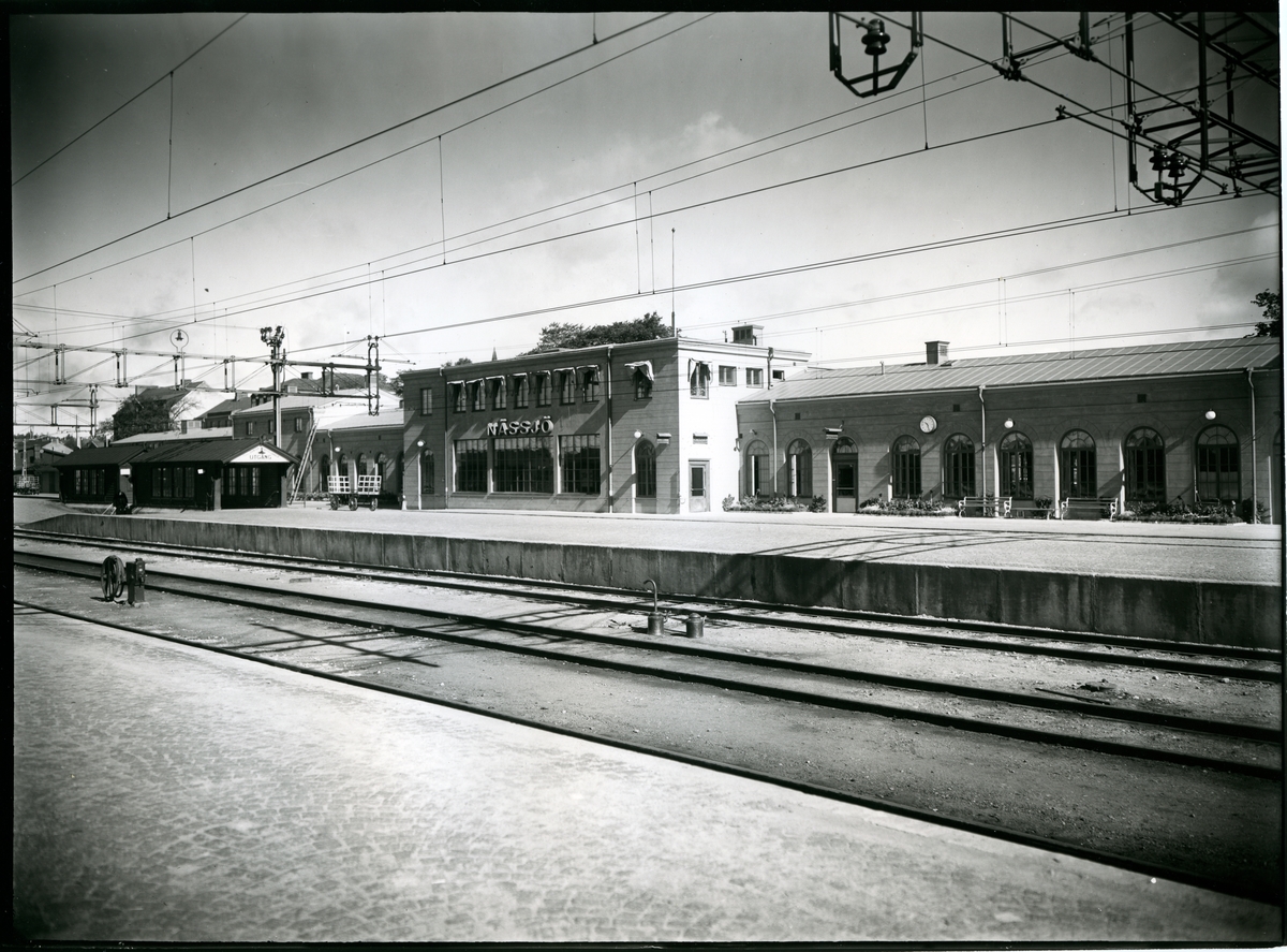 Näsjö station från tågsidan. På kopior av bilden anges år 1936 respektive 1937.