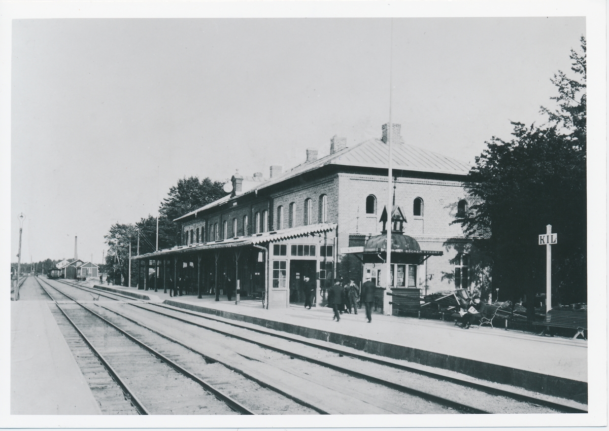 Kil station ligger vid Storgatan i centrala Kil. Det finns tre perronger där tåg avgår ifrån. Dessa nås via en spårövergång. Det finns dessutom en busshållplats utanför stationshusets entré.
