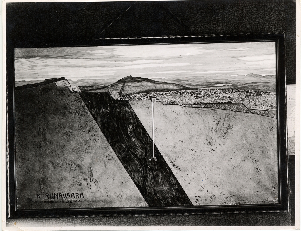 Kiirunavaara, tvärsnitt med utsikt mot Luoossavaara.