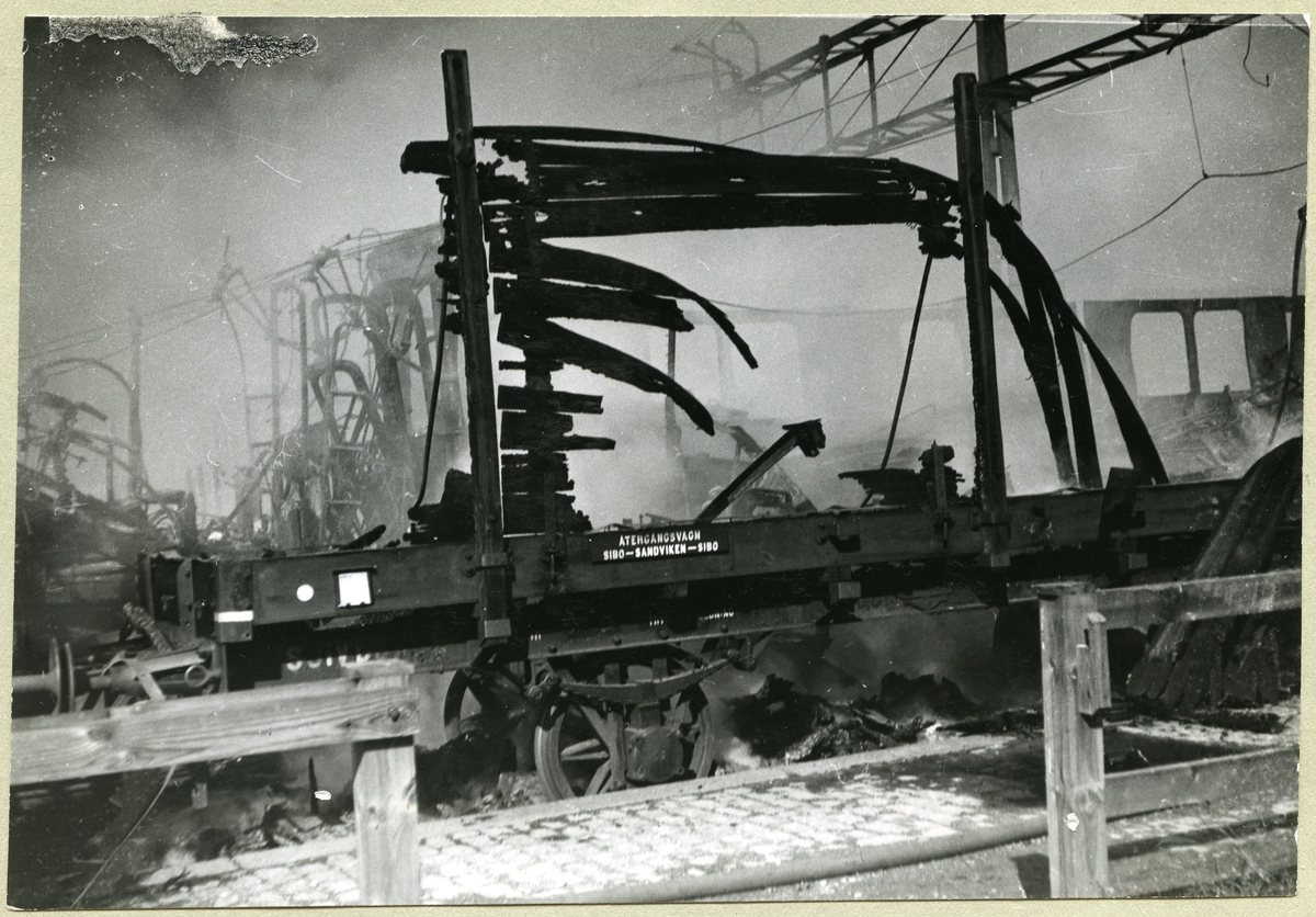 Sprängolyckan i Krylbo med en totalförstörd återgångsvagn (SIBO-SANDVIKEN-SIBO).