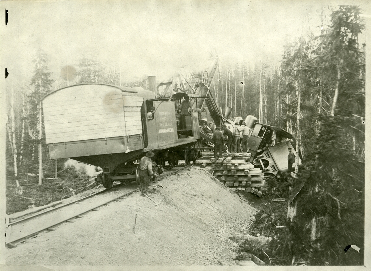 Bärgningsarbete efter urspårning. Statens Järnvägar, SJ Kd 434.