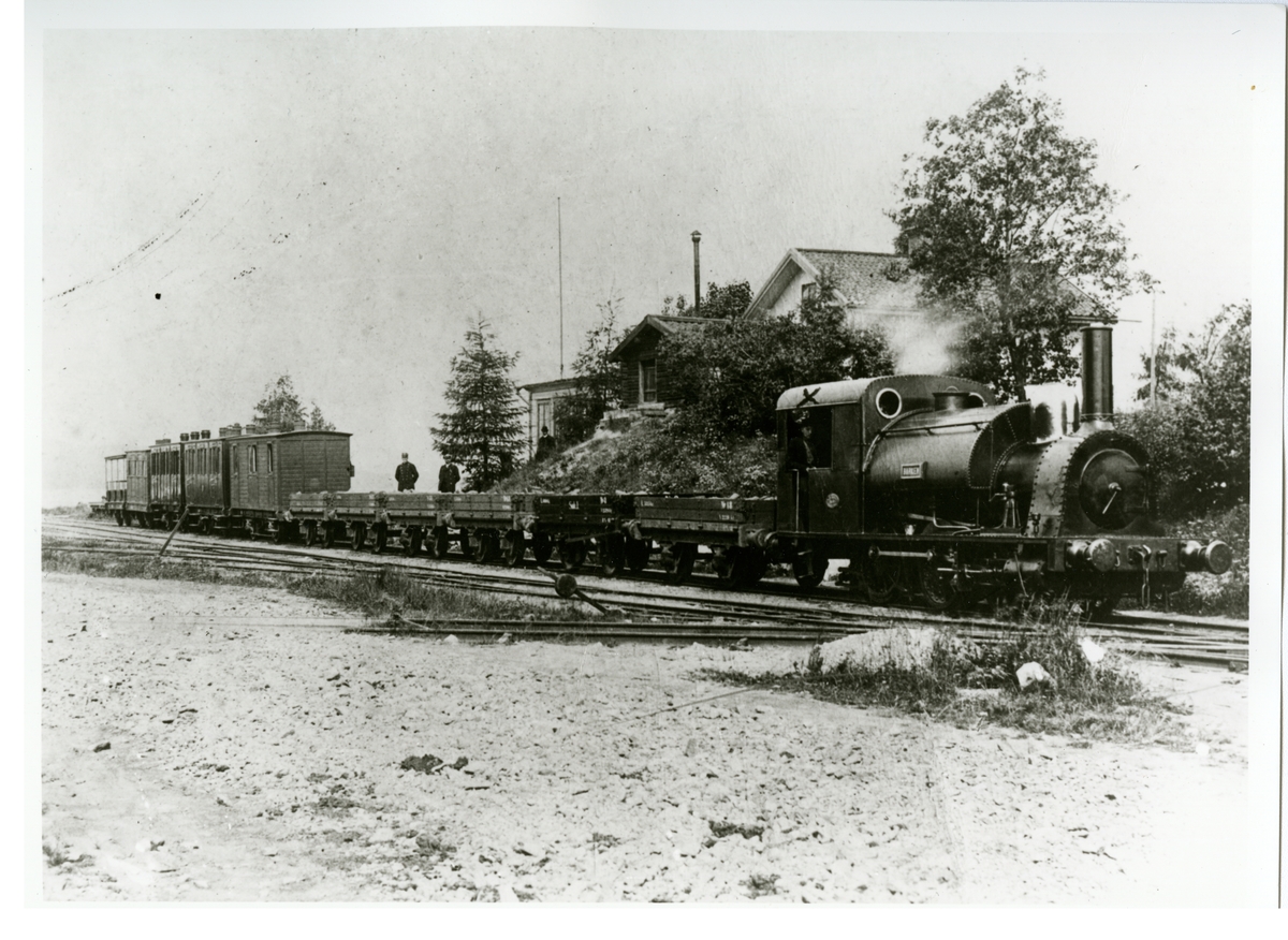 Wessman - Barkens Järnväg, senare Smedjebackens Järnväg, SmbJ, lok 2 "Barken." Marnäs station senare ändrad till Ludvika. Lokförare P.R Pettersson i förarhytten