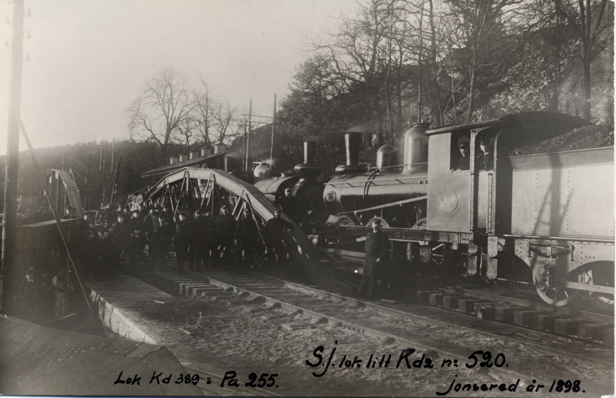 Brobyggnad vid Jonsered station. Statens Järnvägar, SJ Kd2 520, SJ Kd 389, SJ Pa 255.