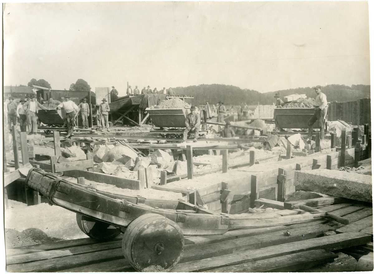 Bygge av gasverk vid Frösunda för SJ:s räkning. Gasen som tillverkades användes till vagnbelysningen i deras vagnar.