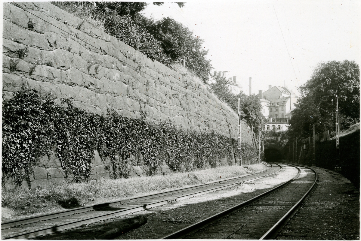 Klängväxter på stenmuren mellan Stockholm S och Södra Tunnelmynningen.