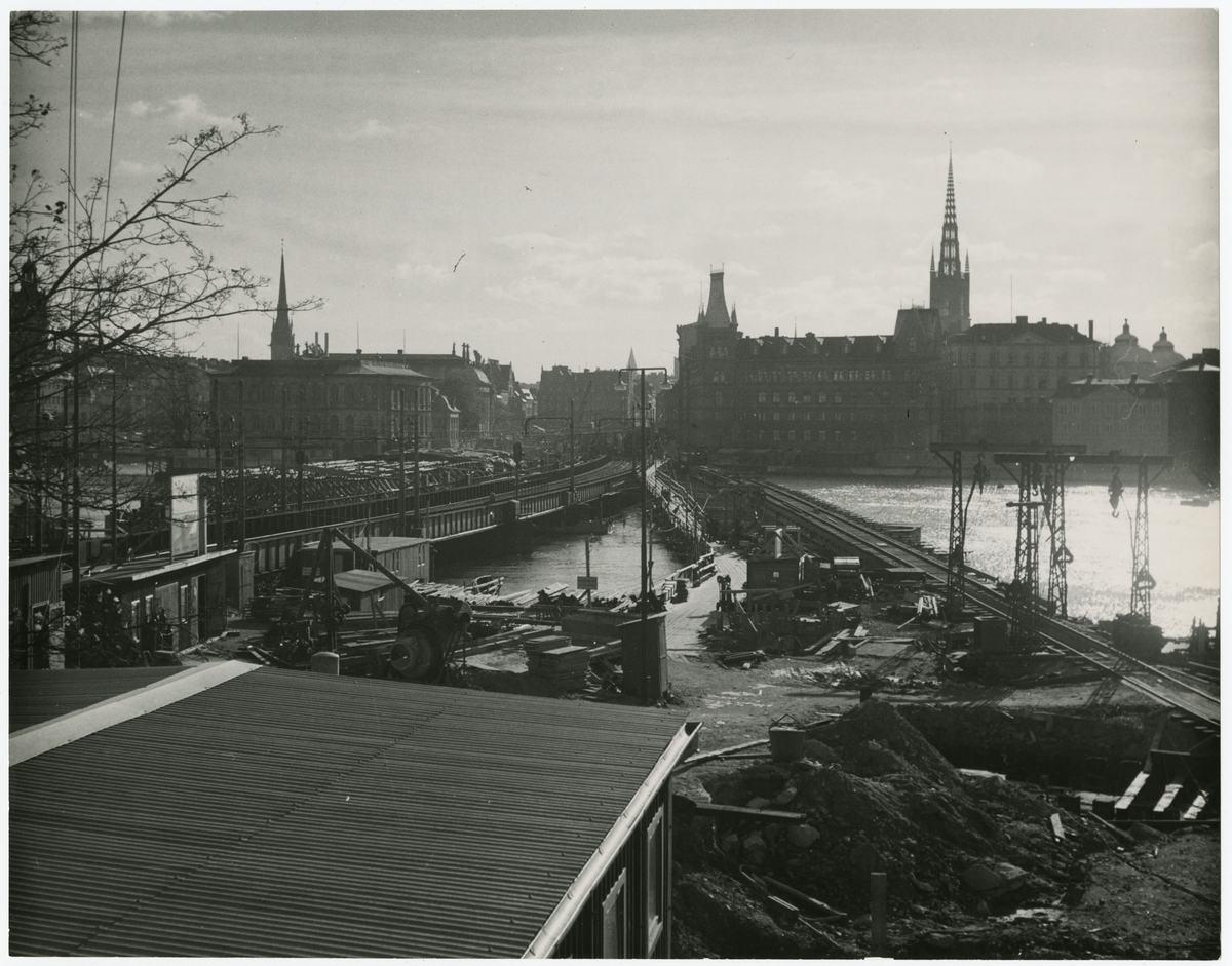Stockholms Central byggnadsarbete på bron över Riddarfjärden 1954