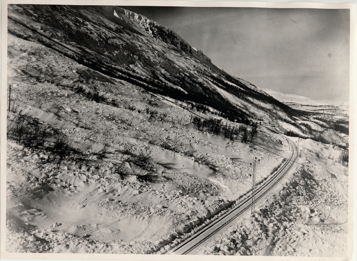 Linjebild från Malmbanan vid Kaisepakte, mellan Stenbacken - Abisko Ö.
