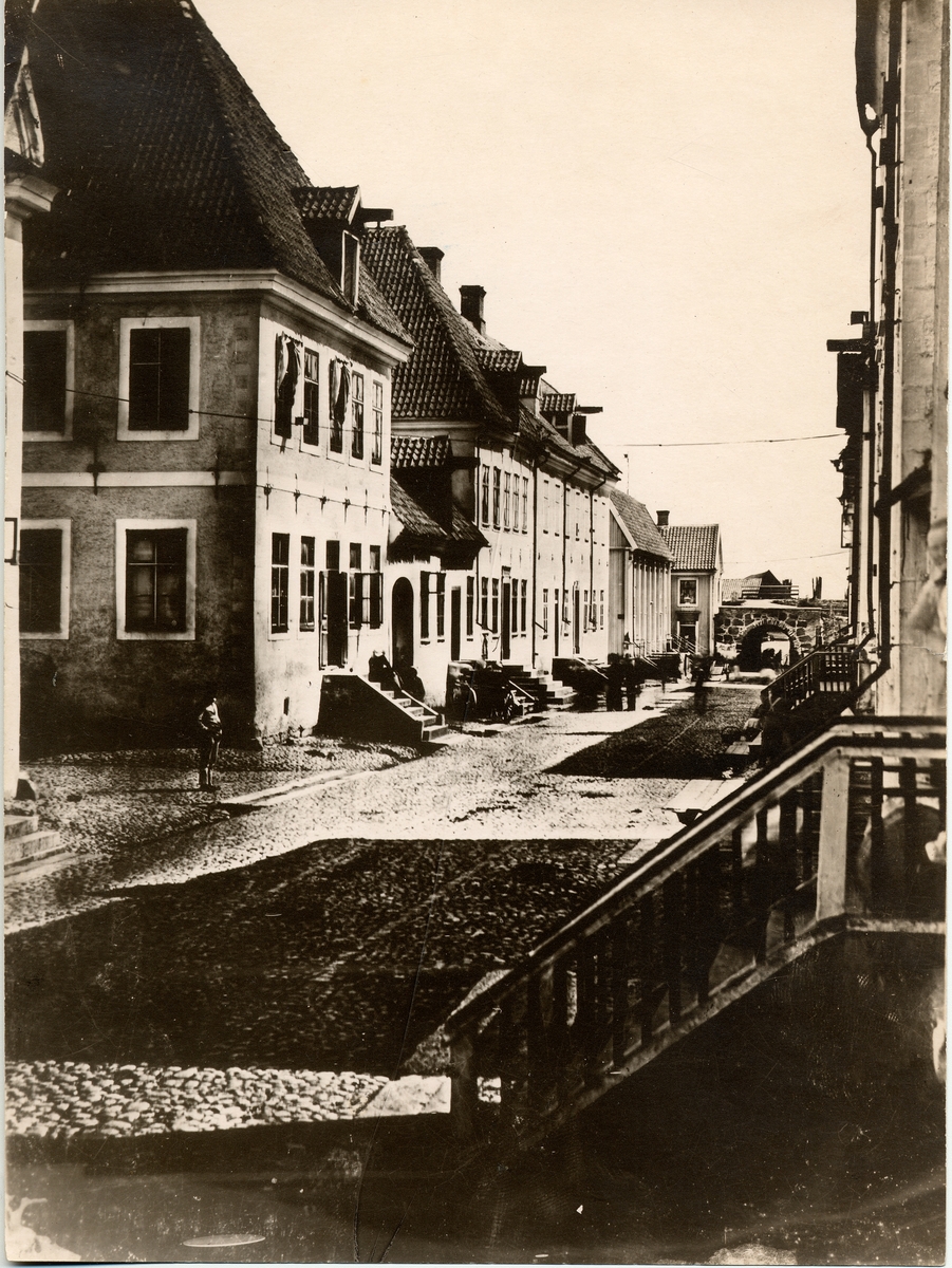 Kalmar. Kaggensgatan. Vy från norr med Jordbrovalvet i bakgrunden.