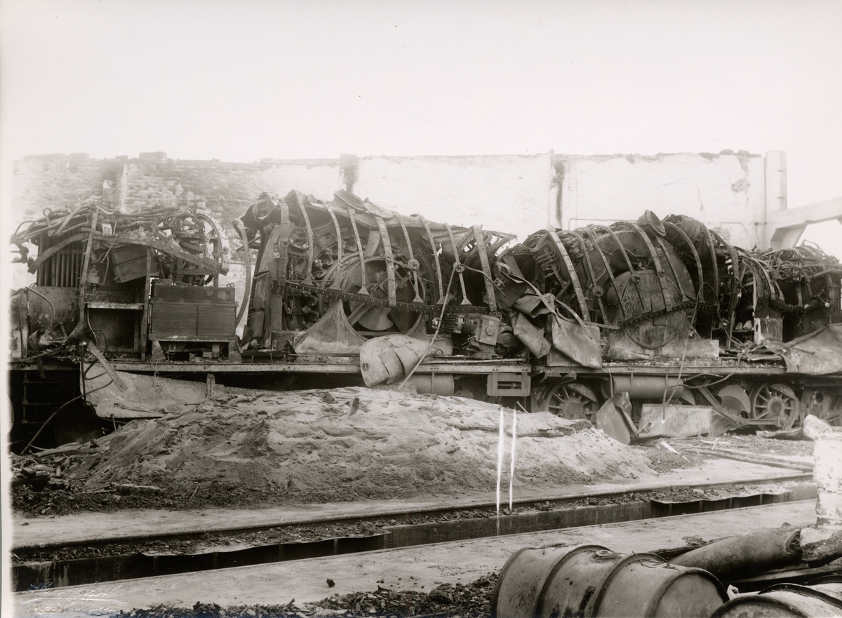 Från branden i Gällivare lokstall. SJ Ob 34/35. Lok på stallspår 20, sett från stallspår 18