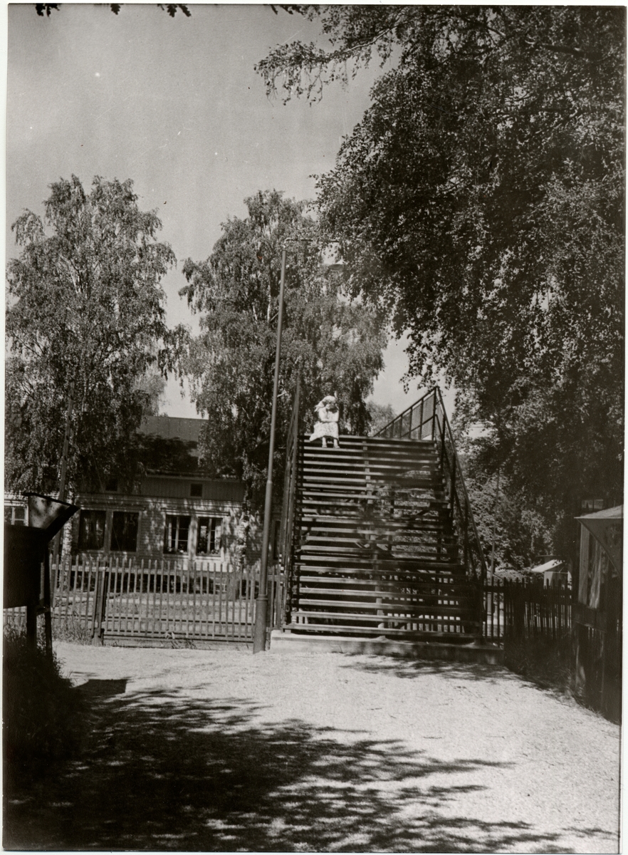 Gångbro över Hässelby villastad bangård. Sommaren 1956.