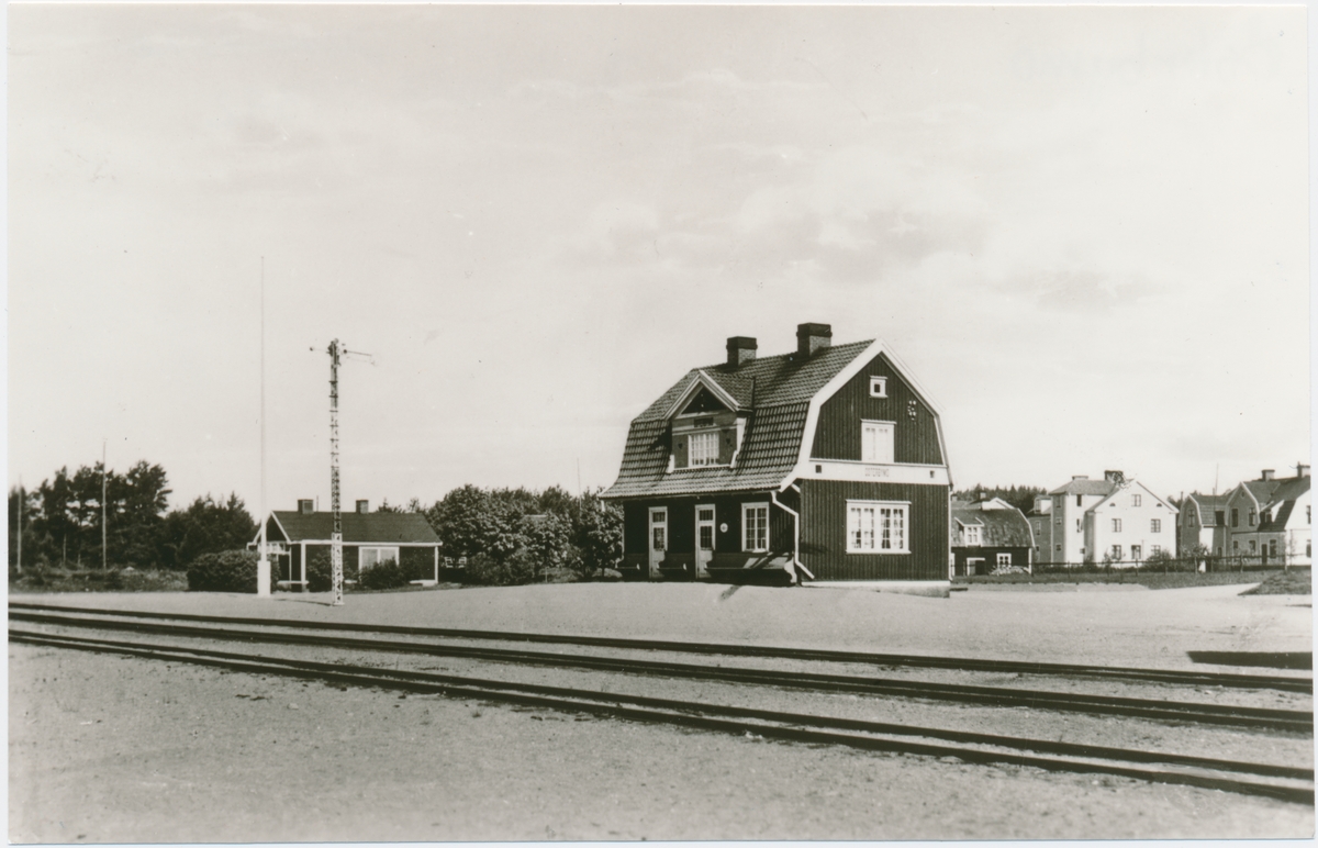 Österbymo station. Eksjö-Österbymo Järnväg, EÖJ. Öppnades 1915 och lades ner 1968. Övertogs av Statens Järnvägar, SJ 1945.