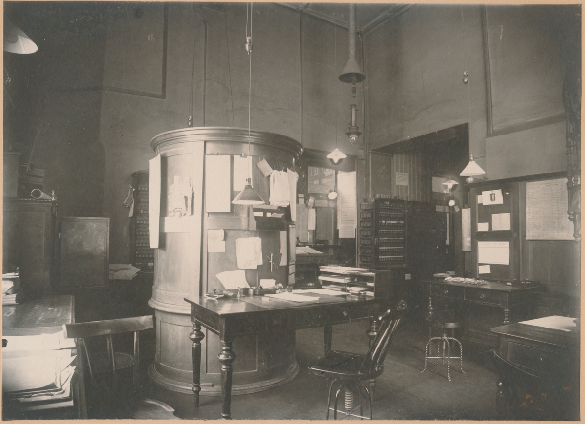 Biljettexpeditionen vid Stockholms Centralstation omkring sekelskiftet.