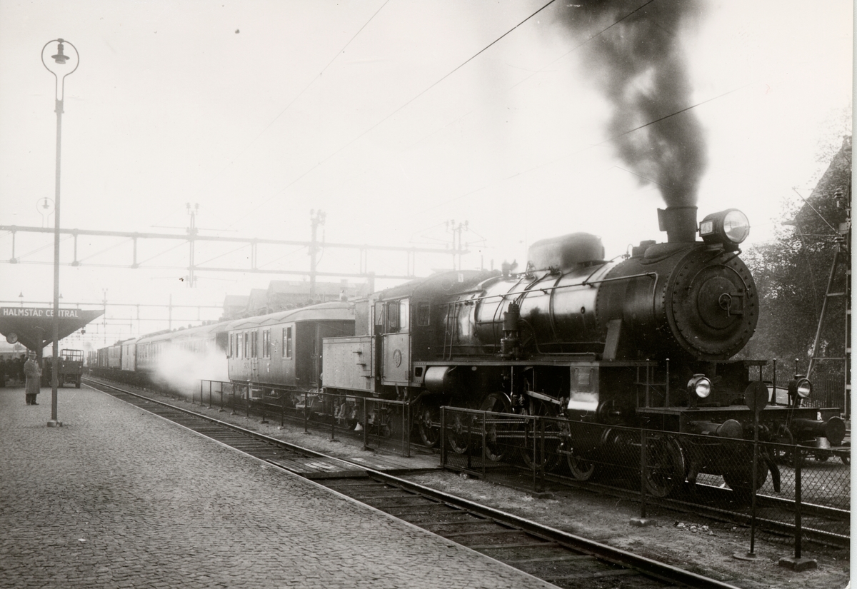 Persontåg nr 2 vid avgång från Halmstad Central 1936-10-03