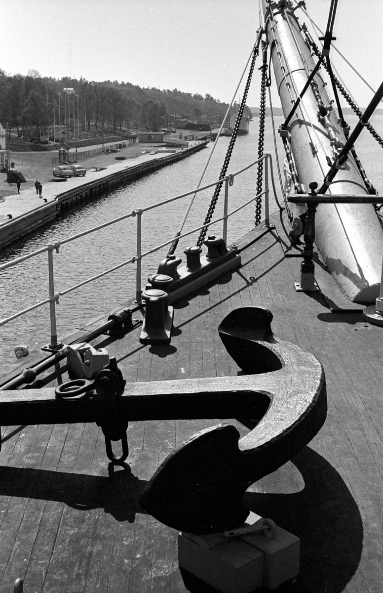 Ålandsresa. Pommern, världens enda fyrmastade fraktsegelfartyg, numera Museifartyg. Fördäck med ankare