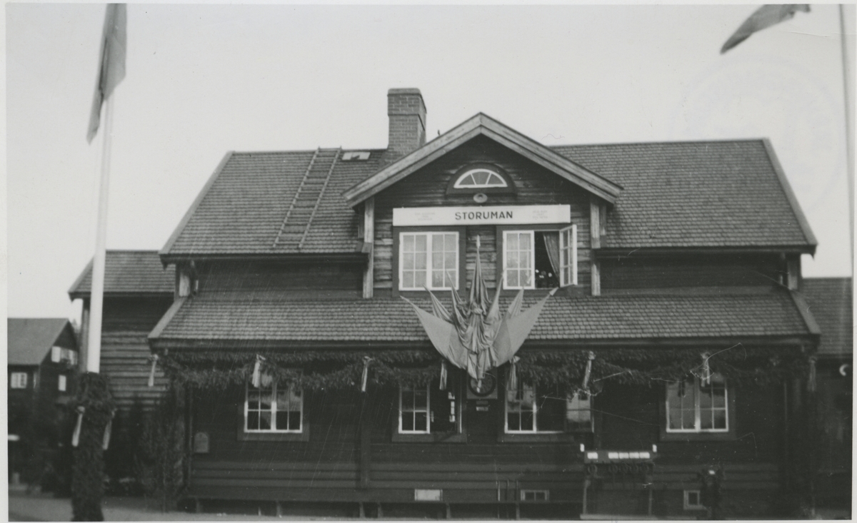 Storumans station smyckad inför invigningen av hela Inlandsbanans sträckning.