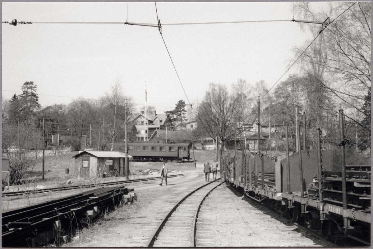 Statens Järnvägar, SJ X0a2p 32, Stockholm Roslagens Järnväg, SRJ Os 1063 med flera vid Stocksund station.